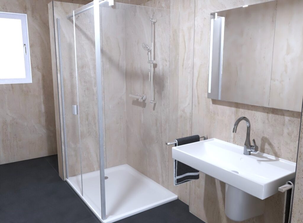 Jede Trennwand wird exakt auf Ihre Badsituation abgestimmt gefertigt.